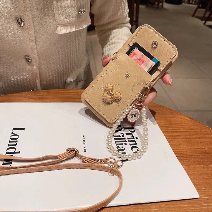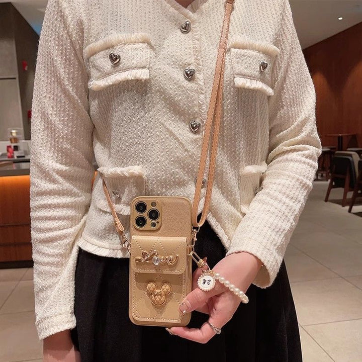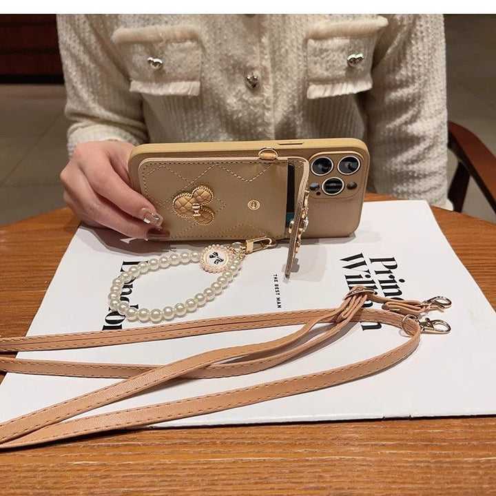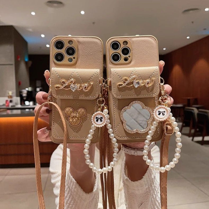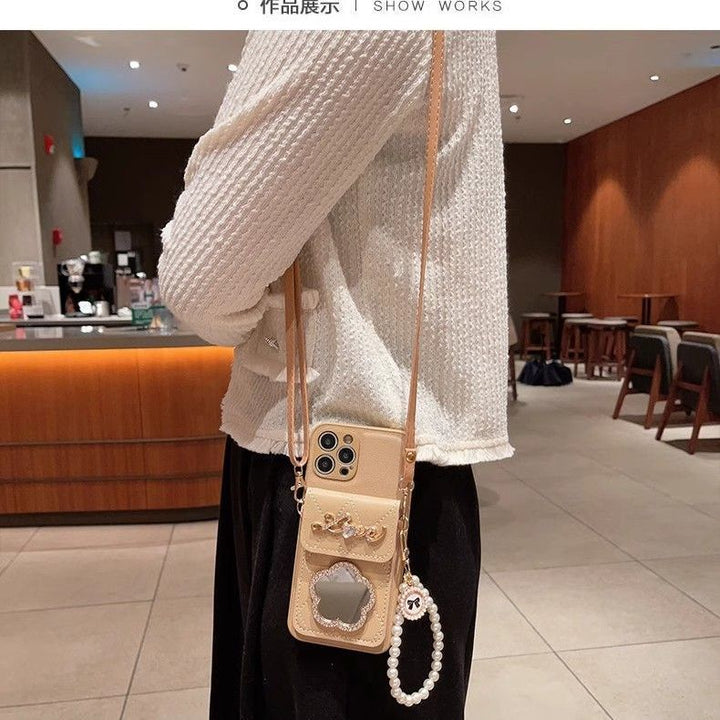 Apple phone case with mirror card holder oblique lanyard