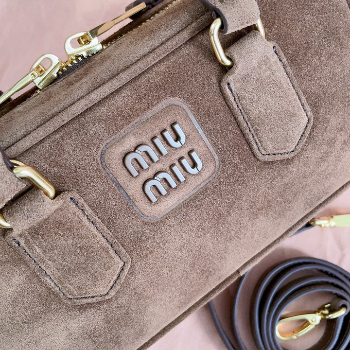 ARCADIE BAG 22 IN CEDAR BROWN SUEDE GOLD HARDWARE