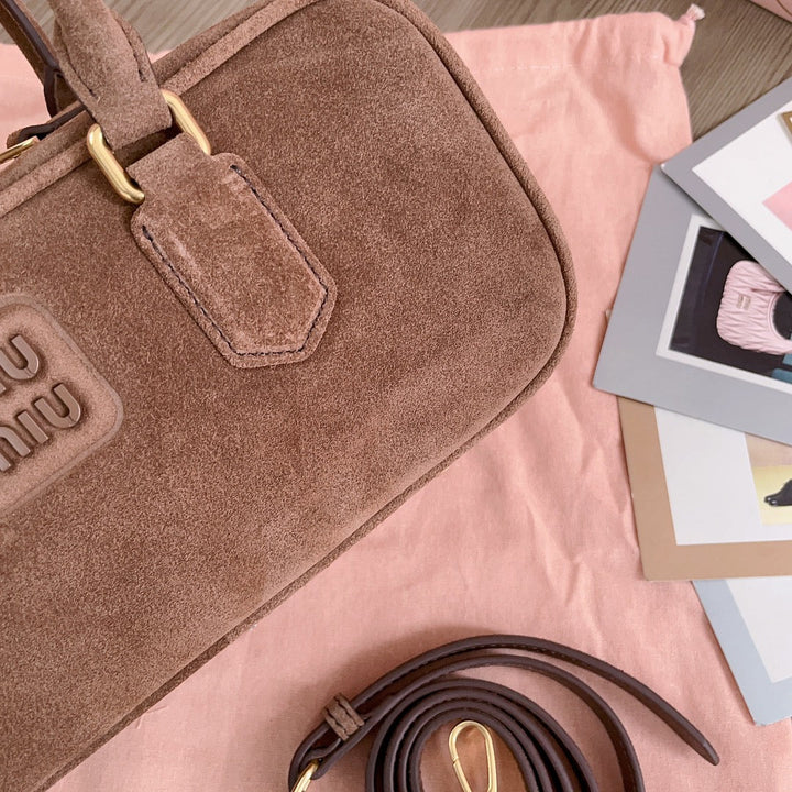 ARCADIE BAG 27 IN PENNY BROWN SUEDE GOLD HARDWARE