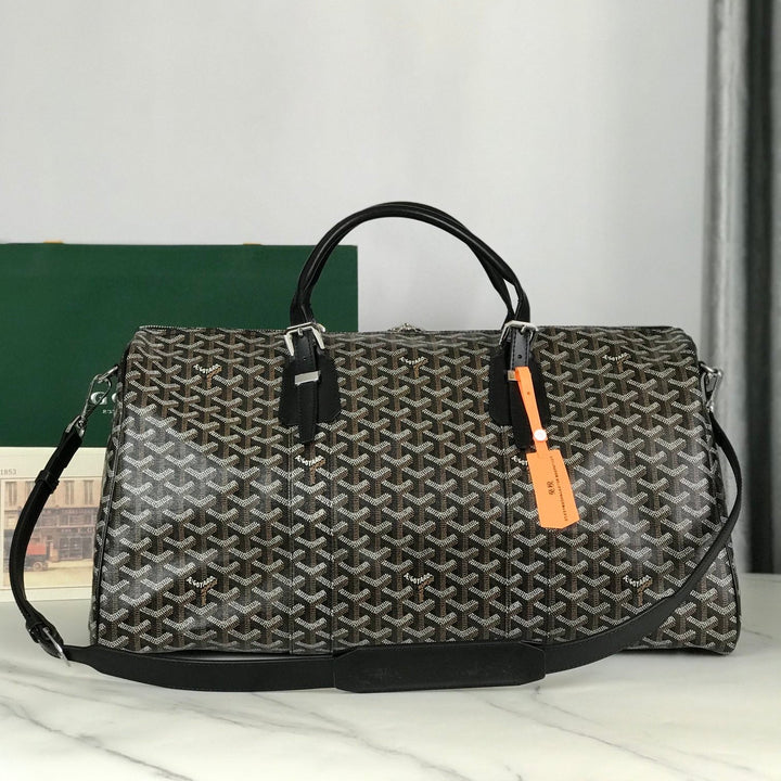 BOSTON 50 BAG IN BLACK GOYARDINE CANVAS AND CALFSKIN TRIM