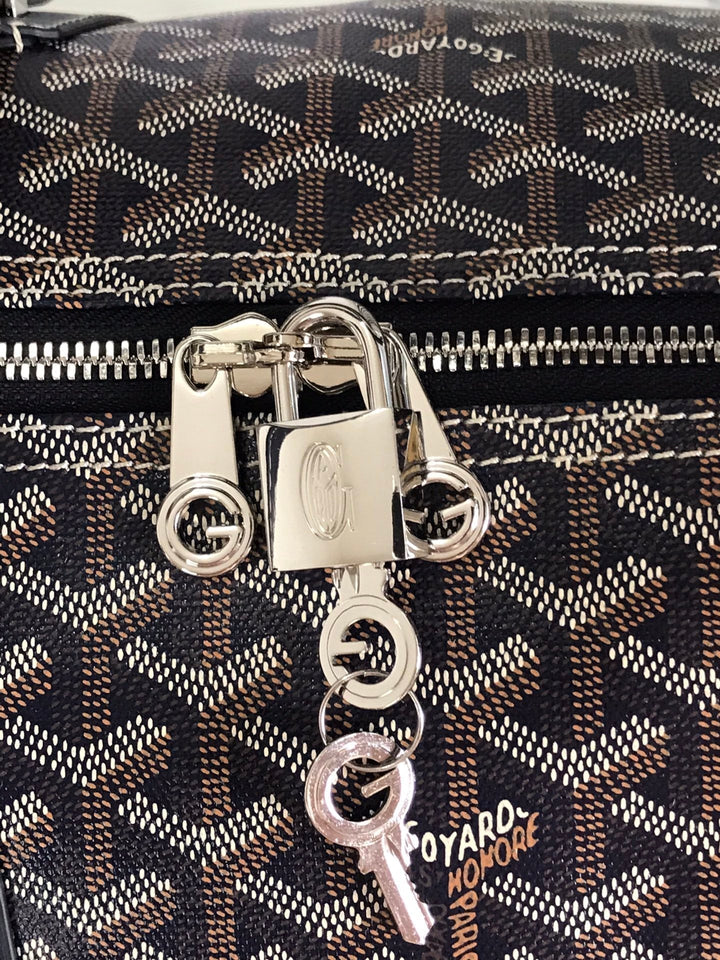 BOSTON 50 BAG IN NAVY BLUE GOYARDINE CANVAS AND CALFSKIN TRIM