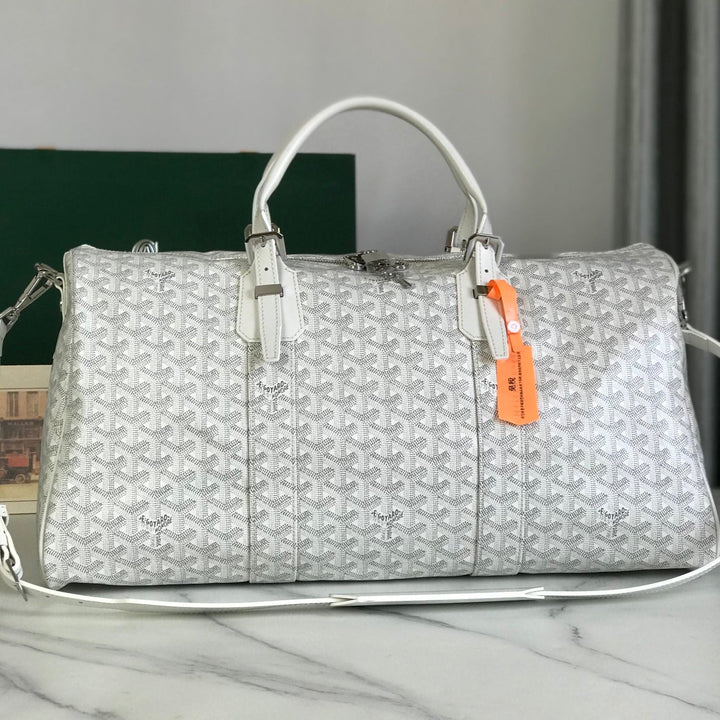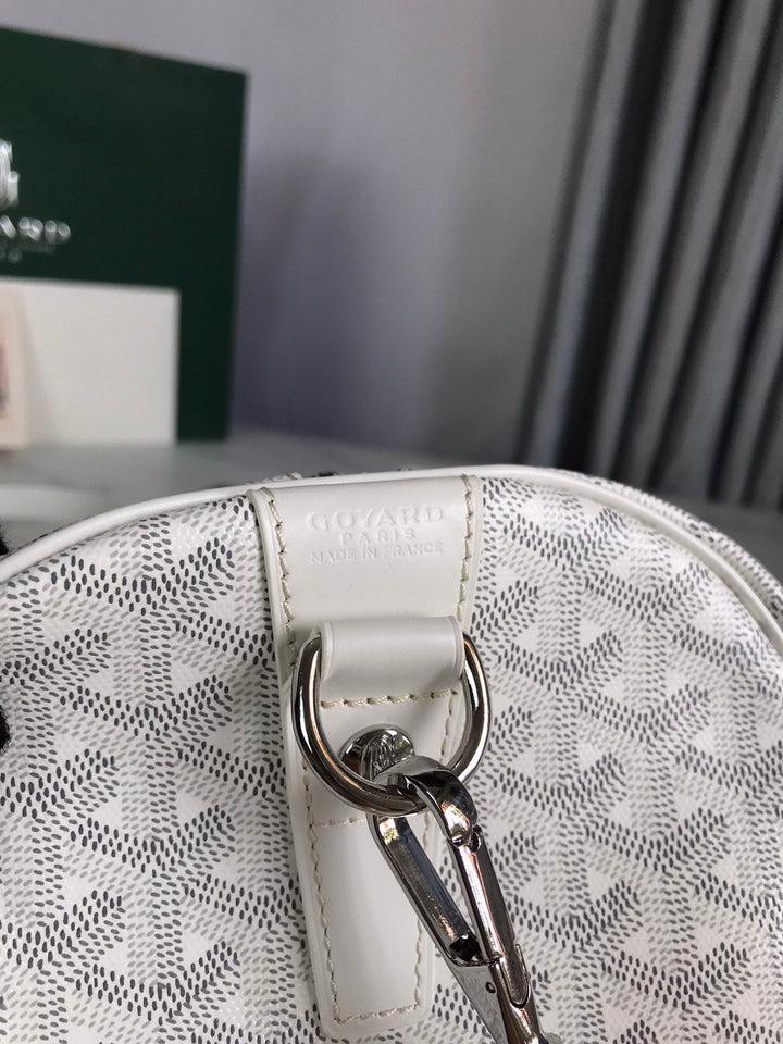 BOSTON 50 BAG IN WHITE GOYARDINE CANVAS AND CALFSKIN TRIM
