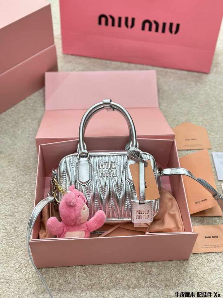 BOWLING BAG 21 IN SILVER LAMBSKIN