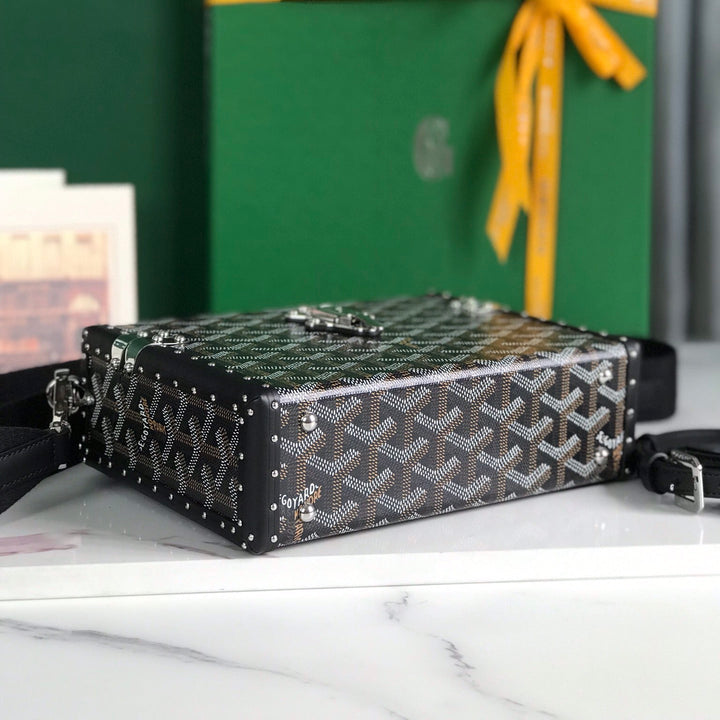CASSETTE TRUNK BAG 21 IN BLACK GOYARDINE CANVAS & CLAMECY COWHIDE