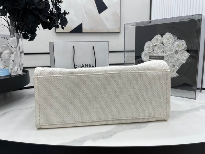 CC DEAUVILLE LARGE 38 TOTE BAG IN WHITE CANVAS WITH BLACK LOGO