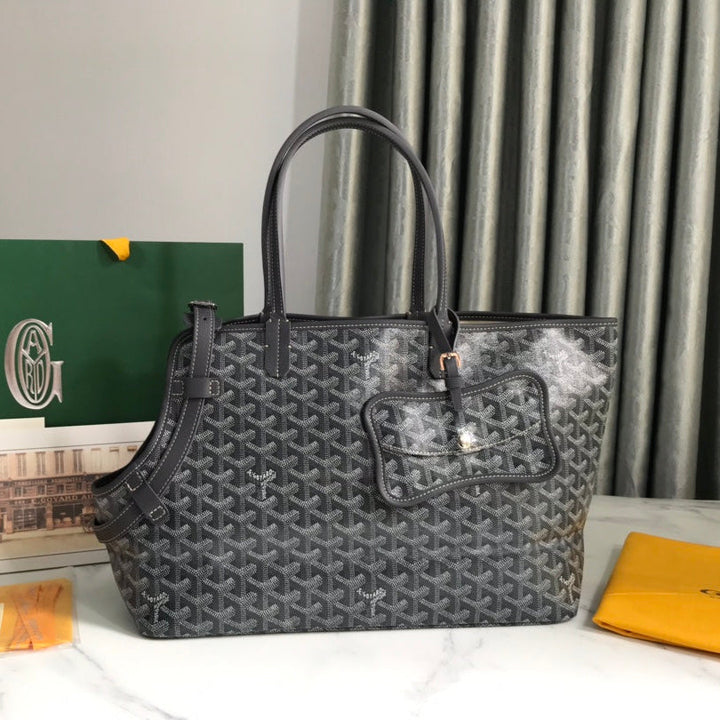 CHIEN GRIS BAG 33 IN GREY BLACK GOYARDINE CANVAS AND CALFSKIN TRIM