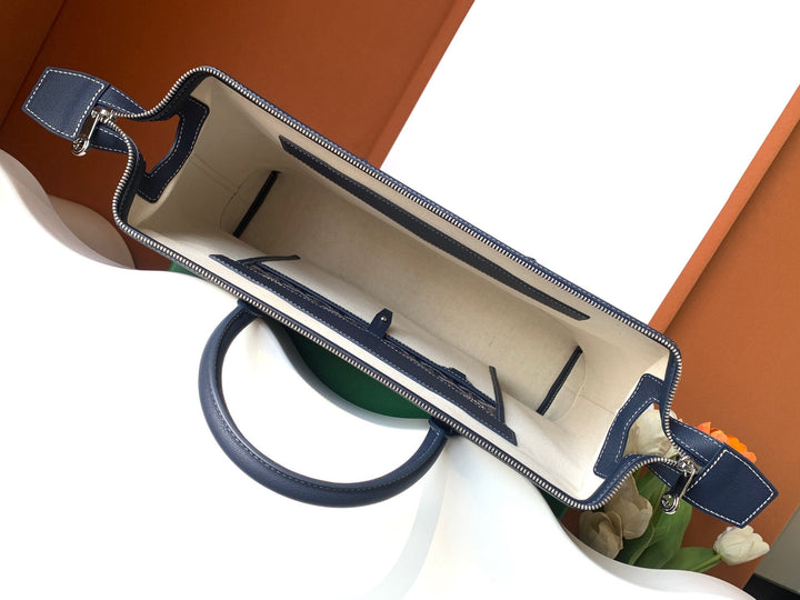 CISALPIN DOCUMENT CASE 39 IN NAVY BLUE GOYARDINE CANVAS AND CALFSKIN