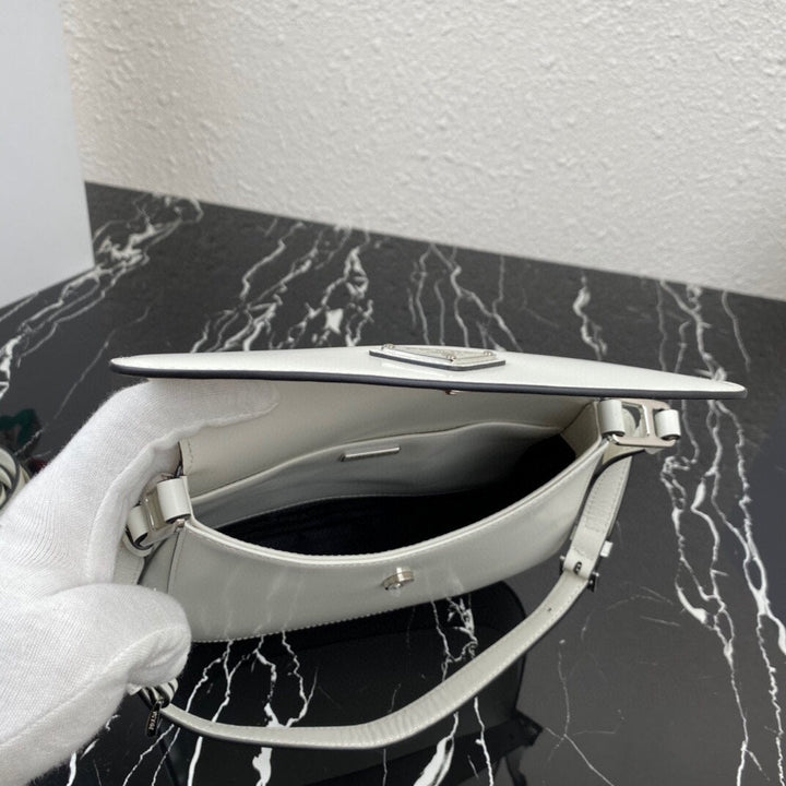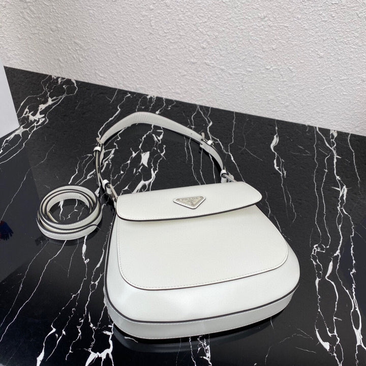 CLEO 24 WHITE BLACK BRUSHED LEATHER SHOULDER BAG