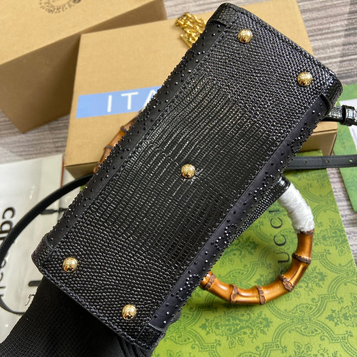 GG DIANA JUMBO 20 MINI TOTE BAG BLACK CANVAS