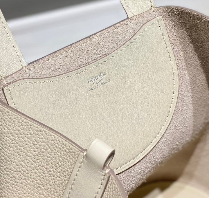 HERMES 25S IN THE LOOP 18 IN IVORY CALFSKIN SILVER HARDWARE
