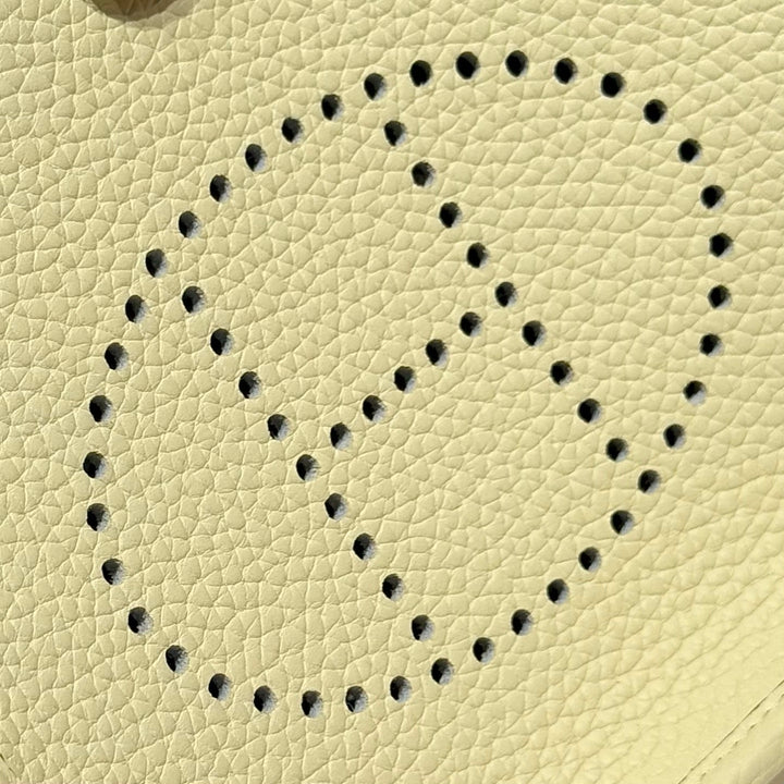 HERMES 25S MINI EVELYNE 18 IN MILTON YELLOW PATTERNED STRAP CALFSKIN SILVER HARDWARE