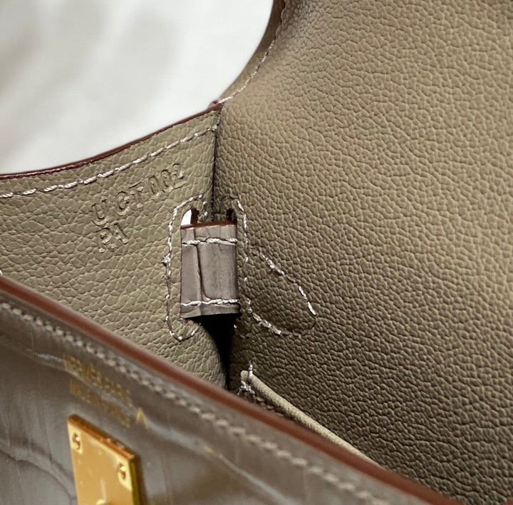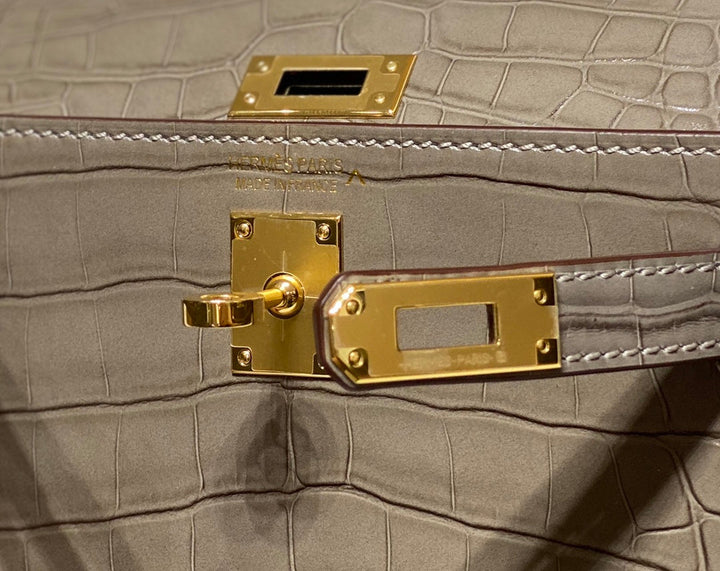 HERMES 25S MINI KELLY 19 IN MOCHA BROWN CALFSKIN GOLD HARDWARE