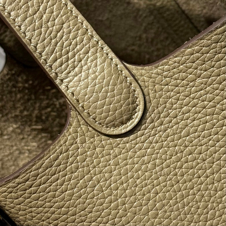 HERMES 25S PICOTIN LOCK 18 IN OLIVE GOLD CALFSKIN GOLD HARDWARE