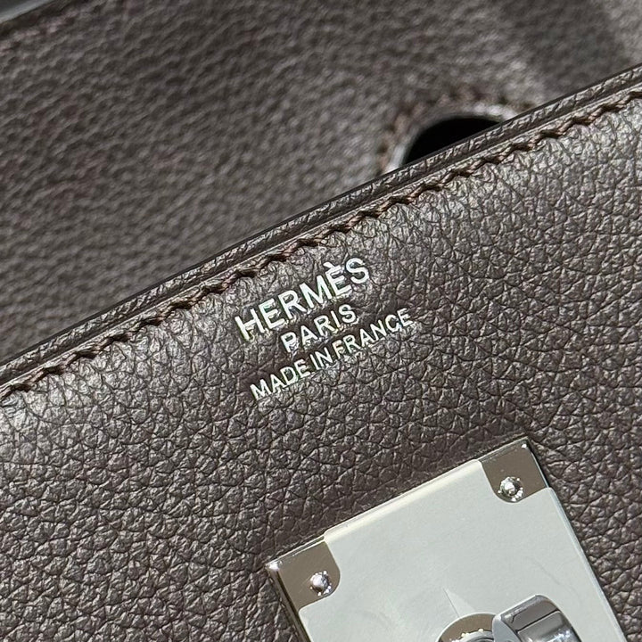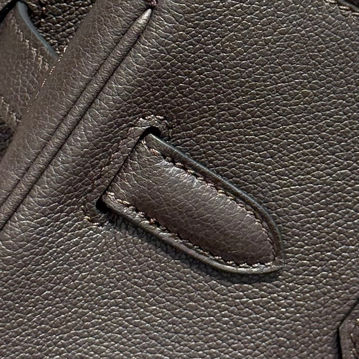 HERMES 25S SHOULDER BIRKIN 29 IN CHARCOAL BROWN CALFSKIN SILVER HARDWARE