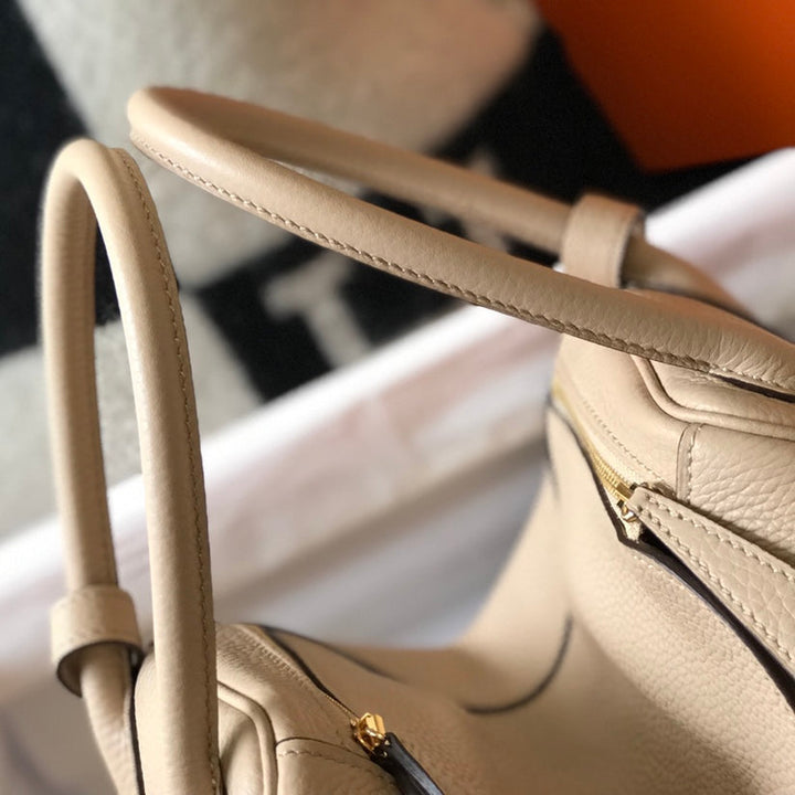HM LINDY 30 BAG IN TAN BROWN CALFSKIN GOLD HARDWARE