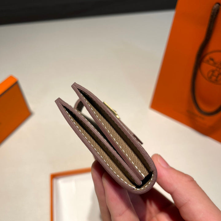 HM MINI BEARN WALLET 10.5 ETOUPE EPSOM GOLD HARDWARE