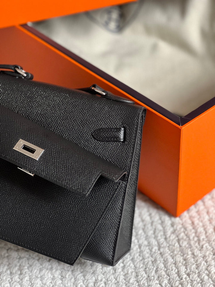 KELLY DESORDRE 20 IN BLACK EPSOM LEATHER WITH SILVER HARDWARE