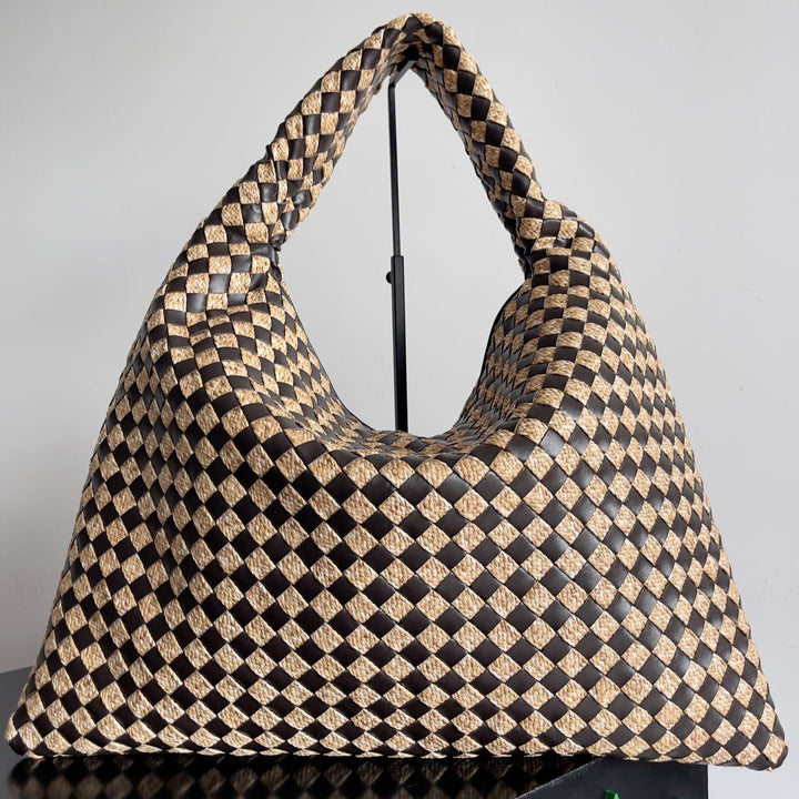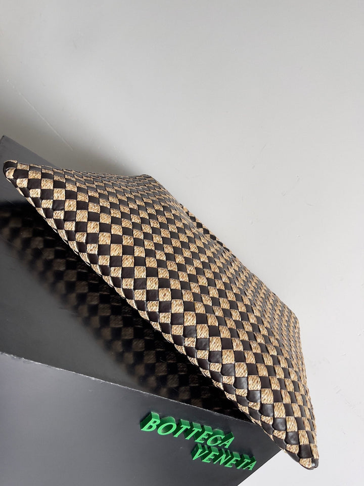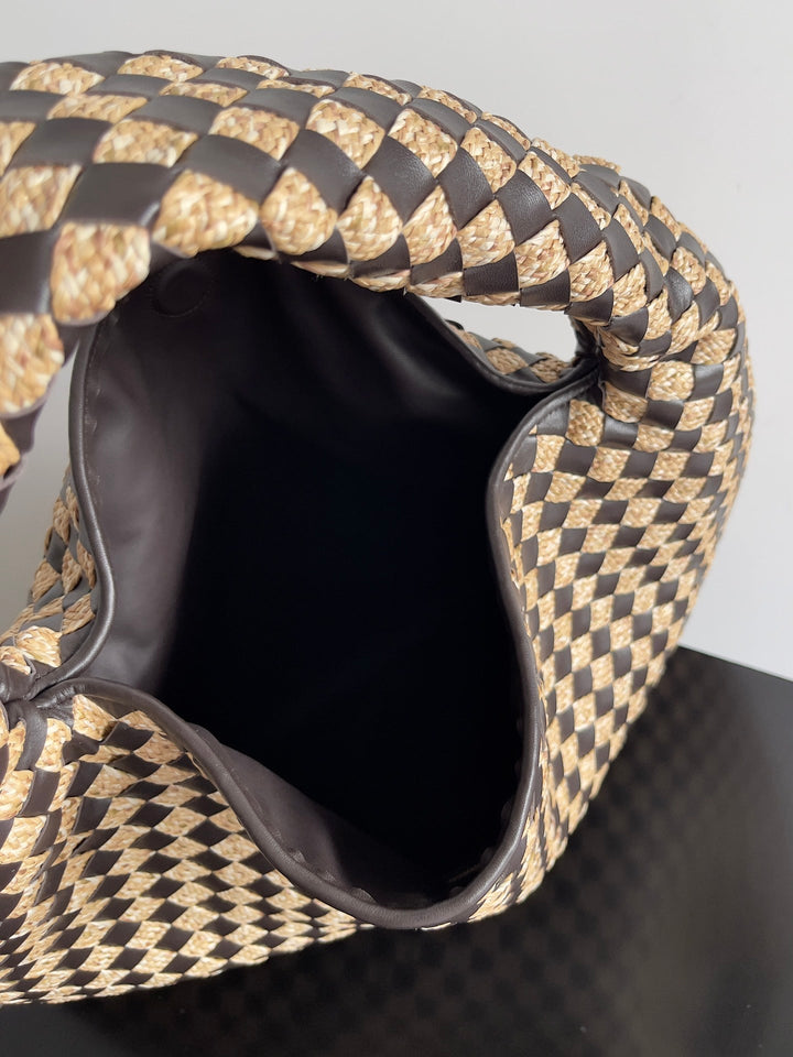 LARGE HOP 54 IN BROWN CALFSKIN AND BEIGE RAFFIA