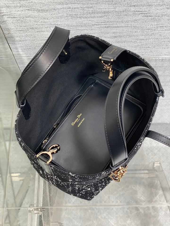 MINI 23 TOUJOURS BAG IN BLACK MIX WHITE CANNAGE TWEED WITH GOLD HARDWARE