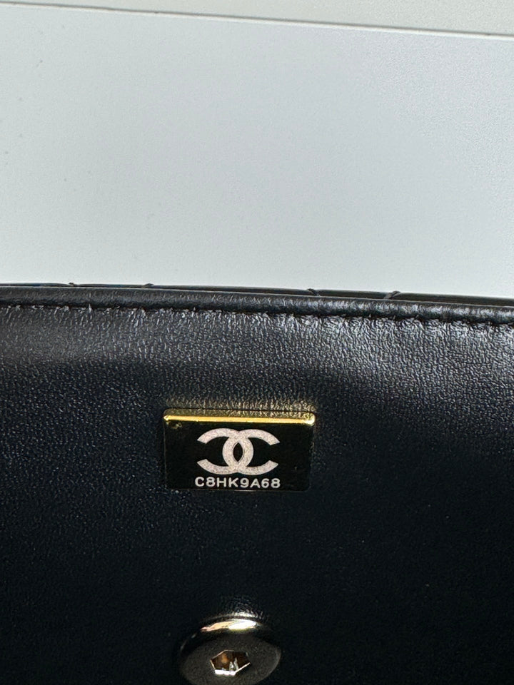 MINI FLAP BAG 20 IN BLACK GLOSSY CALFSKIN GOLD HARDWARE