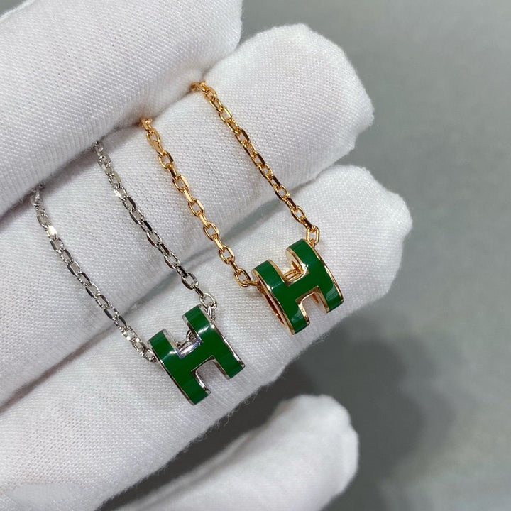 ˇFashion StreetˇPOP H GREEN NECKLACE SILVER AND GOLD