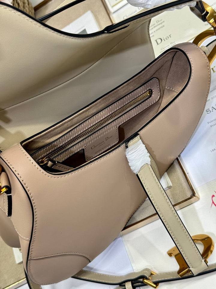 SADDLE BAG 25 WITH STRAP LATTE MEDIUM BROWN GRAINED CALFSKIN