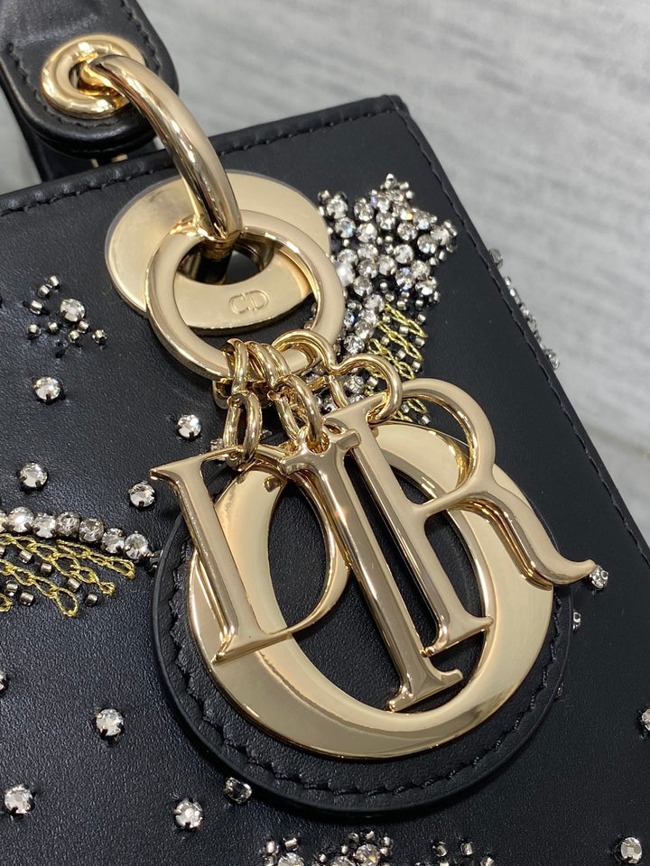 SMALL 20 BAG BLACK LAMBSKIN WITH SHOOTING STAR EMBROIDERY WOMEN
