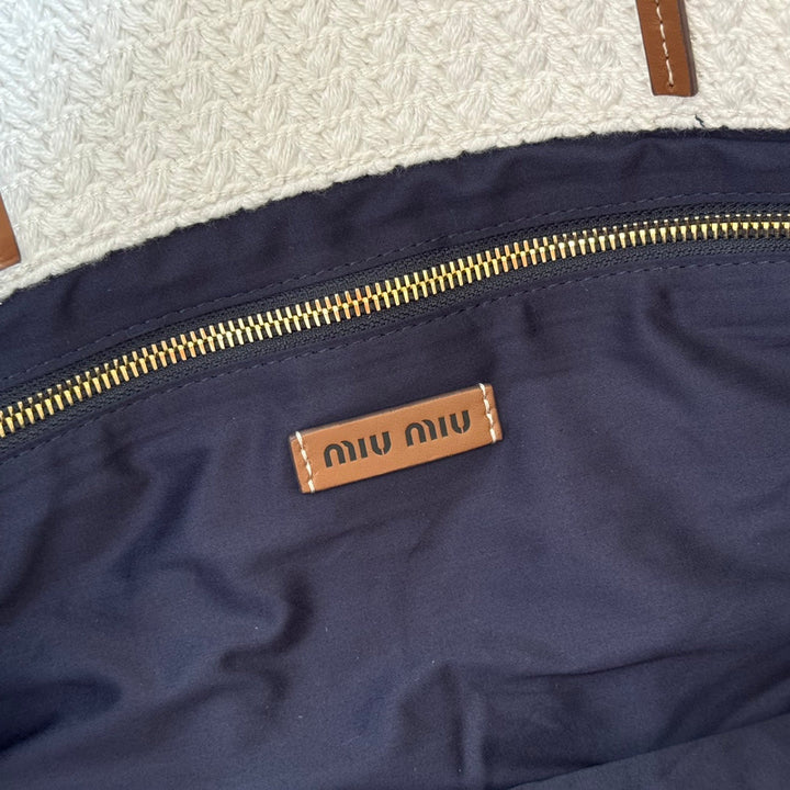 TOTE BAG 40 IN STRIPED PATTERN OF WHITE BEIGE AND BLACK WOVEN RAFFIA