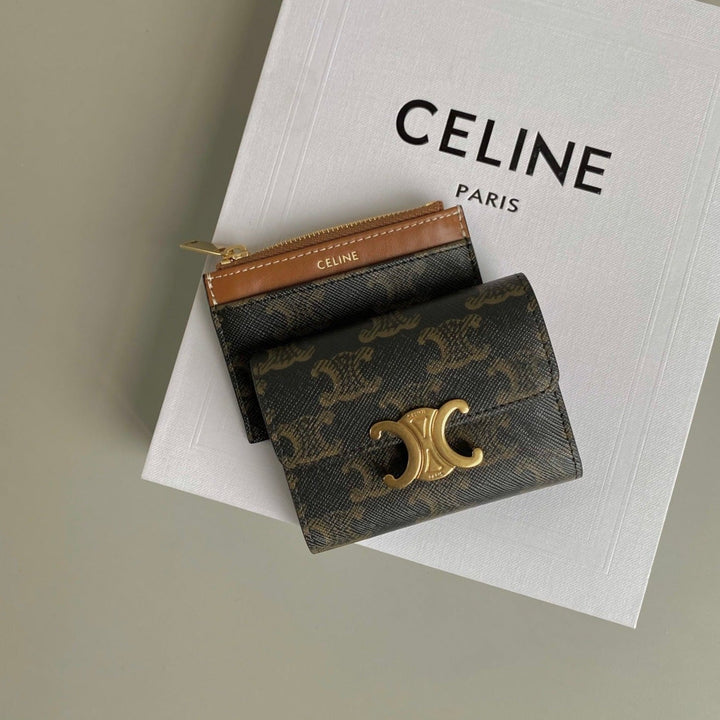 TRIOMPHE 9 WALLET TWO-IN-ONE OLD FLOWER BROWN CALFSKIN
