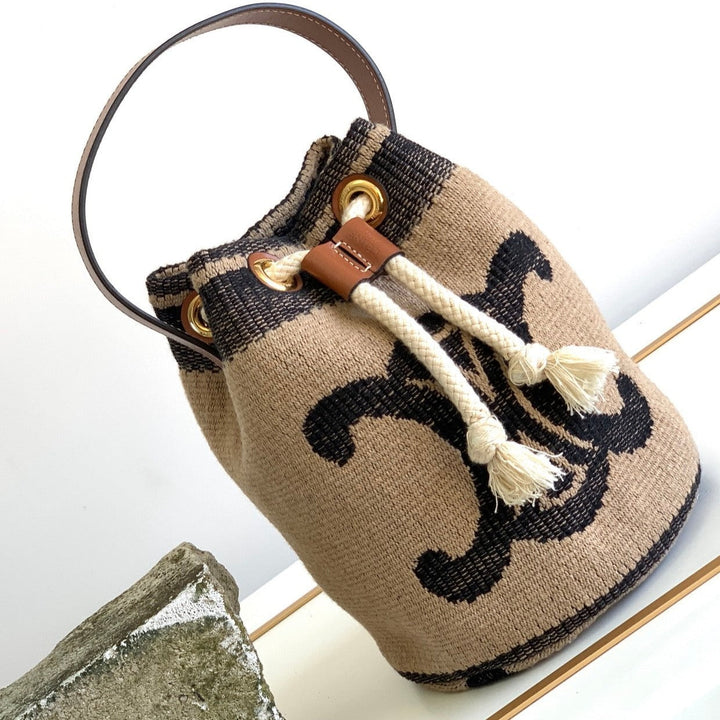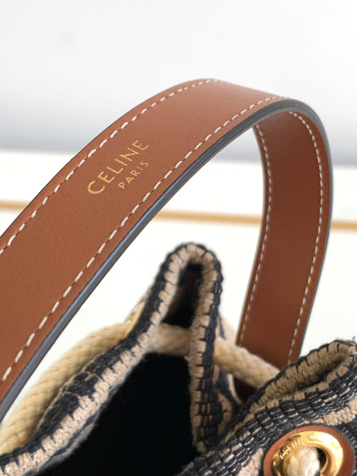 • Material: fabric lining, hand carry, drawstring closure, leather handle length 13 cm