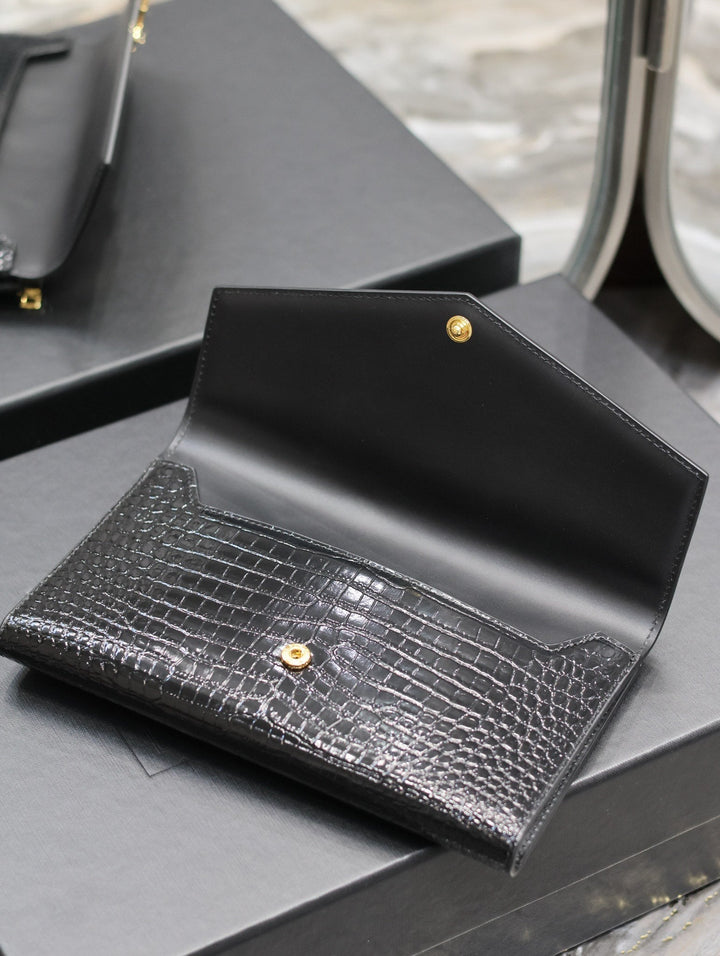 UPTOWN WALLET 21 IN BLACK CROCODILE PATTERN CALFSKIN GOLD LOGO