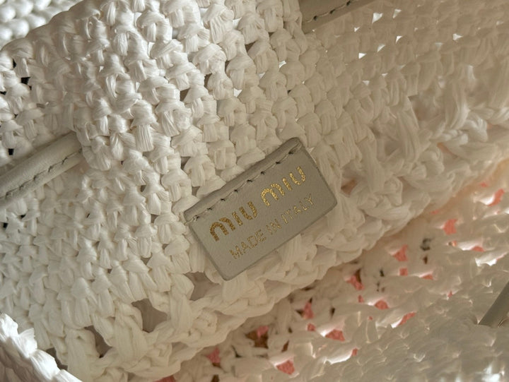 WANDER BUCKET BAG 23 WHITE IN RAFFIA WITH LEATHER TRIM